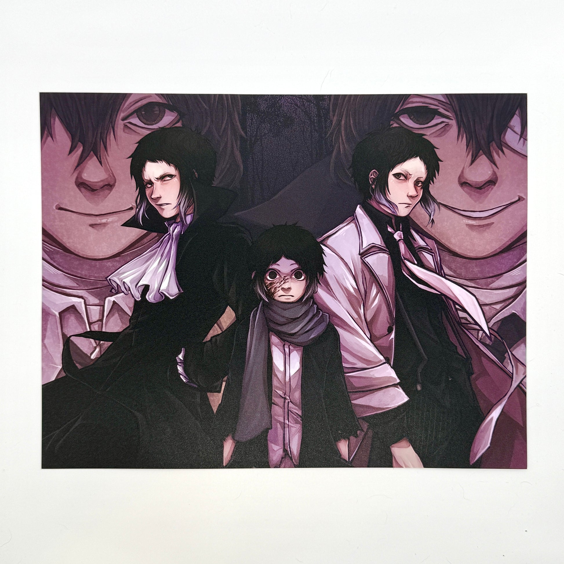 8.5”x11” print of multi-universe Akutagawa (and Dazai) from Bungo Stray Dogs! Printed on high quality satin photo paper.