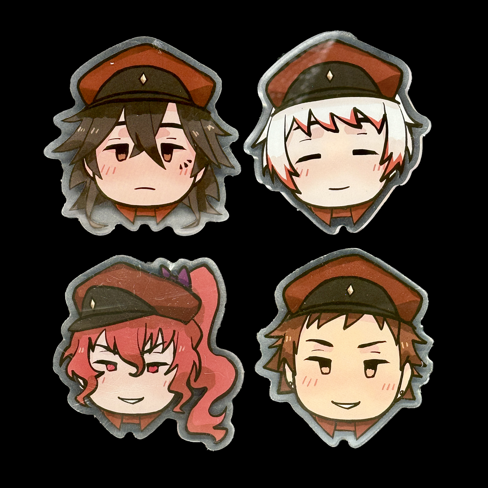 Acrylic pins of Tecchou, Jouno, Teruko, and Tachihara from Bungo Stray Dogs!