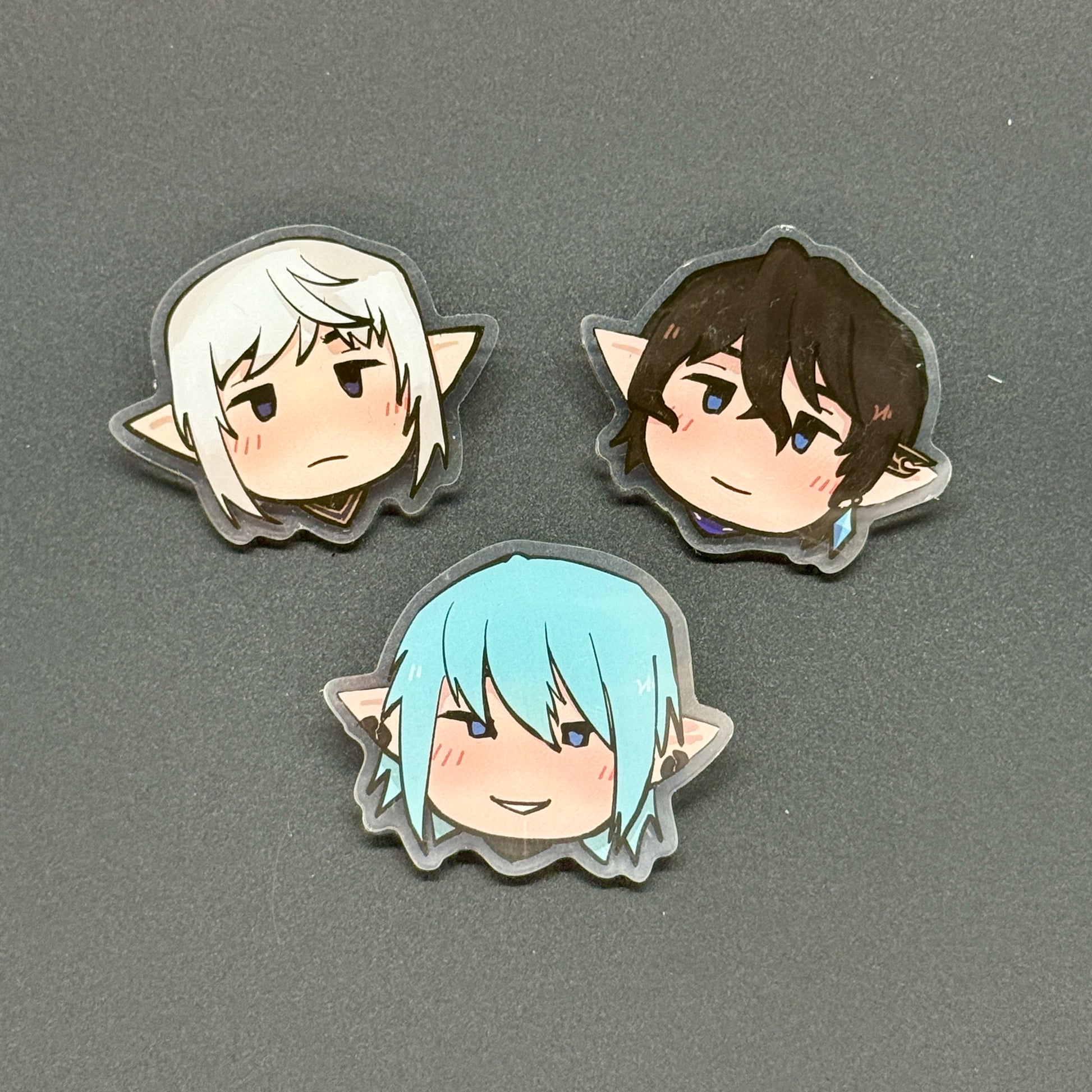 Acrylic pins of Estinien, Aymeric, and Haurchefaunt from Final Fantasy XIV!