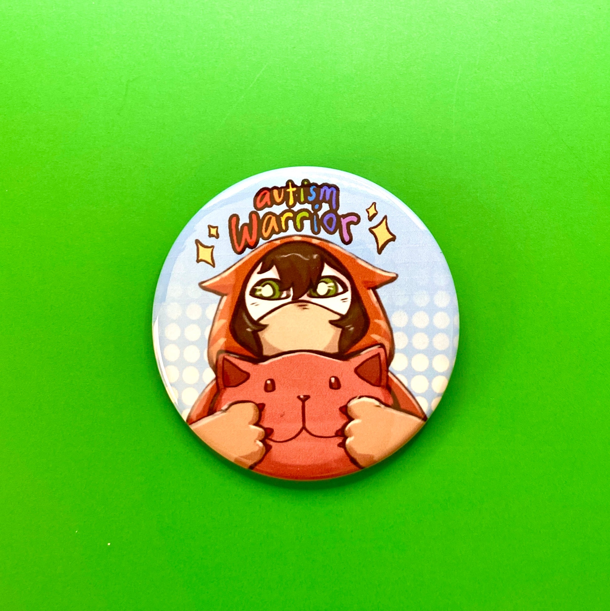 Each button is made with a metal pin backing and measures 2.25” in diameter. A protective mylar film is used to protect the artwork, giving each button a nice glossy finish.